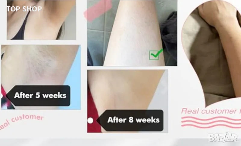 Резултати в салона само за 4 седмици: С устройството за лазерна епилация от IBORRIA можете да постигнете качествени резултати в салона от комфорта на вашия дом. Това не само спестява време и пари, но и гарантира вашата поверителност. Само след четири седмици лечение (два пъти седмично) ще забележите значително намаляване на растежа на косата. За да поддържате резултата, просто продължете с последващи процедури на всеки две седмици.