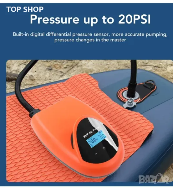 Бързо надуване: двоен високоволтов двигател, двустепенна аерация, по-висока скорост, пълно гребло за 6 минути. Насладете се на стилно проектирана помпа за падълборд с бързо надуване под високо налягане!