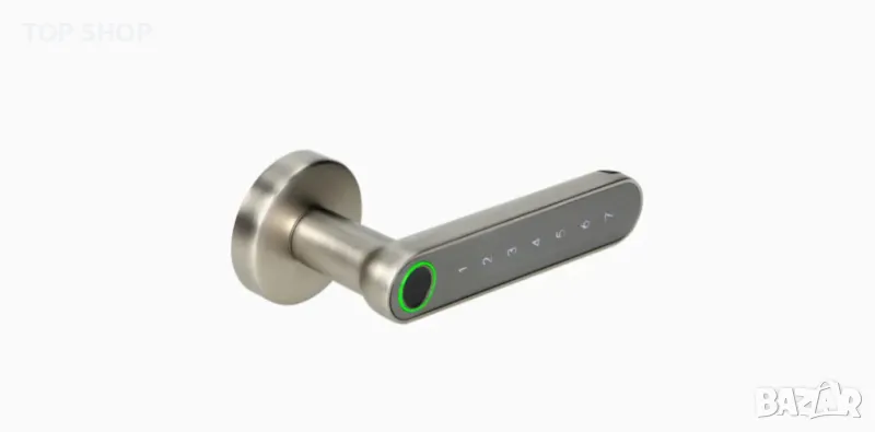 Модерна комбинирана дръжка със сензорна клавиатура и четец на пръстови отпечатъци е подходяща за използване както в дясна, така и в лява врата, вместо монтиране на традиционна дръжка. Може да се отвори чрез въвеждане на ПИН кода на потребителя, сканиране на въведения преди това пръстов отпечатък или използване на Bluetooth връзка чрез приложение на телефона. Включените монтажни винтове позволяват монтаж във врати с дебелина от 38 мм до 58 мм, а елегантната и семпла форма на дръжката пасва на много видове врати. Биометричните данни се съхраняват само в устройството и приложението активира само функцията за запис на пръстови отпечатъци в дръжката, така че можем да го отворим, дори ако нямаме телефон наблизо (дръжката е офлайн). Дръжката се предлага във вариант никелирана.