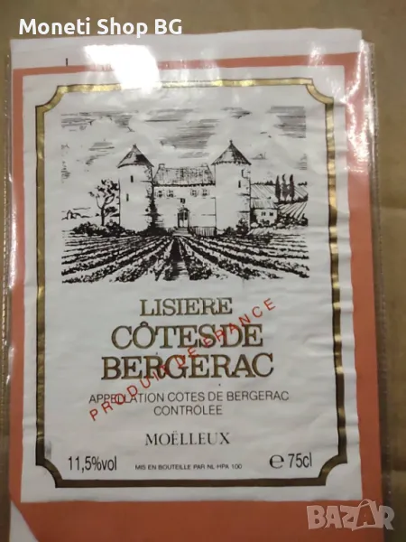 Колекцията се предлага на малки лотове по 10 бройки. Качество и състояние видно от снимките. Събирана е повече от 20 години. Подходяща е както за начинаещи така и за професионални колекционери за да попълнят липсващите марки и години. Подходяща е за пана за къщи, механи и винени заводи. Подходяща са за дизайнерски студиа и агенции, за вдъхновявания на дизайнери като модели и сюджети както и да бъдат използвани за изследване на тененциите на етикети през различните години на винопроизводителите. Молим измамници, които възнамеряват да купят стари бутилки колекционерски вина, които не са били съхранявани правилно и бутилките са с изгнили, мухлясали или паднали етикети да не се свързват с нас. Ние няма да им съдействаме в престъпните намерения. Правим това уточнение, защото вече се свързаха такива лица с нас с идеята да купят етикети от колекцията и да ги залепят на такива етикети вино, които да продадат за оригинали на богати колекционери. Да, ние знаем, че етикета продава! Ние предираме за етично поведение и отношение в колекционерските среди. Цената от 3 лева на брой не се коментира дори и при покупка на 500 - 700 - 1000 екземпляра. Идеята е тези етикети на ниска цена да достигнат до повече колекционери и да донесат повече радост на повече хора.