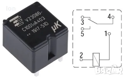 Авто реле V23086-C1001-A403, 12V, 30A със съпротивление на бобината 254 ома +/-10% за газови уредби.