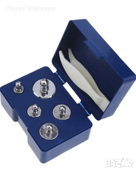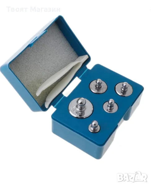 Комплект тежести за калибриране от 100g, включително 1 PCS 50g, 2 PCS 20g, 1 PCS 10g, 1 PCS 5g.