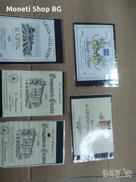 Колекцията се предлага на малки лотове по 10 бройки. Качество и състояние видно от снимките. Събирана е повече от 20 години. Подходяща е както за начинаещи така и за професионални колекционери за да попълнят липсващите марки и години. Подходяща е за пана за къщи, механи и винени заводи. Подходяща са за дизайнерски студиа и агенции, за вдъхновявания на дизайнери като модели и сюджети както и да бъдат използвани за изследване на тененциите на етикети през различните години на винопроизводителите. Молим измамници, които възнамеряват да купят стари бутилки колекционерски вина, които не са били съхранявани правилно и бутилките са с изгнили, мухлясали или паднали етикети да не се свързват с нас. Ние няма да им съдействаме в престъпните намерения. Правим това уточнение, защото вече се свързаха такива лица с нас с идеята да купят етикети от колекцията и да ги залепят на такива етикети вино, които да продадат за оригинали на богати колекционери. Да, ние знаем, че етикета продава! Ние предираме за етично поведение и отношение в колекционерските среди. Цената от 3 лева на брой не се коментира дори и при покупка на 500 - 700 - 1000 екземпляра. Идеята е тези етикети на ниска цена да достигнат до повече колекционери и да донесат повече радост на повече хора.