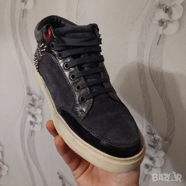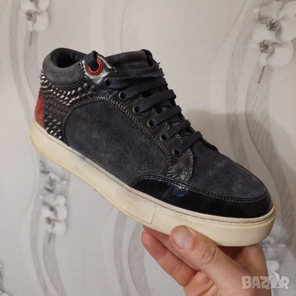 Маратонките "Royaums" са изработени от велурен материал и частично с кожа. С кръгъл връх и гумена подметка с височина 3см. Продуктът е с общи следи от употреба , Външно много добро състояние .