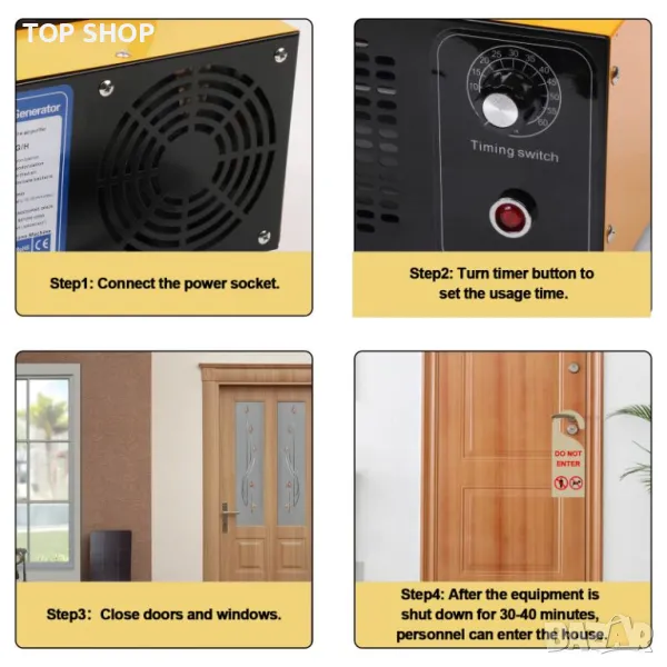 Сцени за използване: Нашата озонова машина е много подходяща за гаражи, ферми, мазета, хотели и убиец на миризми на домашни любимци и др. Може да се отърве от всяка миризма, цигара или пура, домашен любимец, боя или почистване, прах, вода, готвене и други миризми във въздуха.