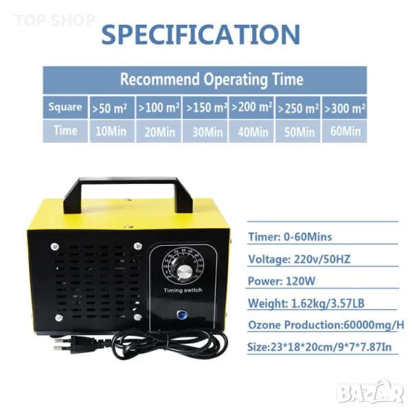 Отнема само 60 минути: можете да зададете времето за почистване до 60 минути. Времето за третиране може да се регулира според размера на помещението. Забележка: По време на работа на вашето семейство/домашни любимци е забранено да остават в стаята.
