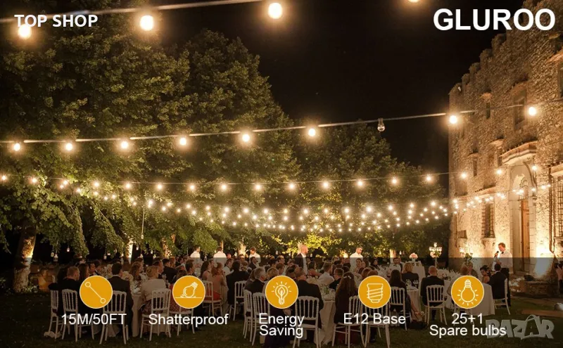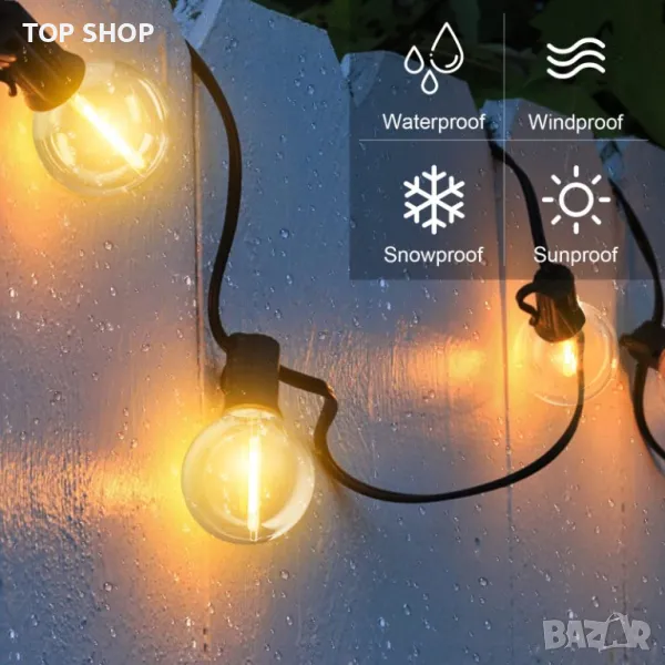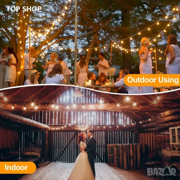 Разнообразна употреба: Външните приказни светлини излъчват естествена топла светлина (2700 K) и създават топла и романтична атмосфера, подходящи за закрито/външно, градина, вътрешен двор, бистро, барбекюта, вечери, сватби, партита за рождени дни или украса за коледно дърво и други поводи .