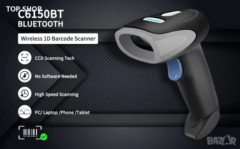 Bluetooth Баркод скенер четец IMHORESE C6150BT - Bluetooth 1D CCD баркод скенер
