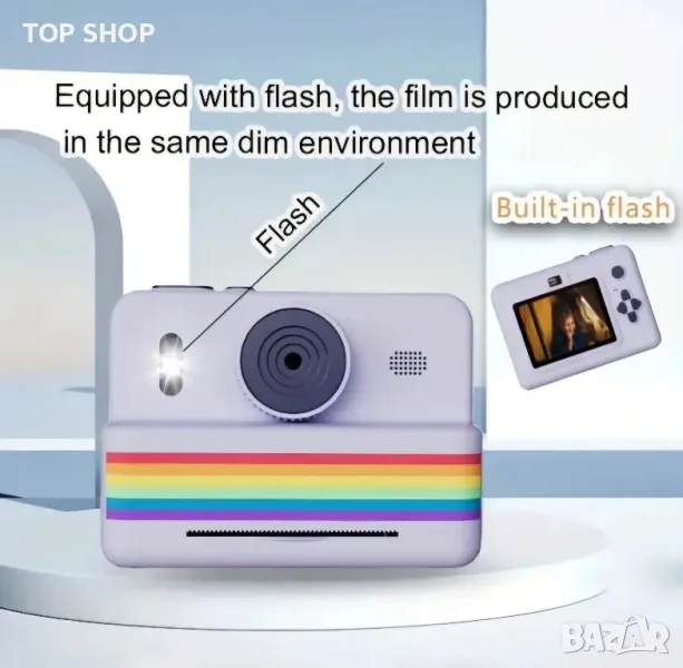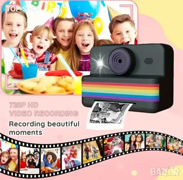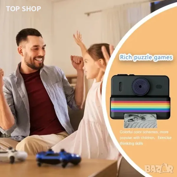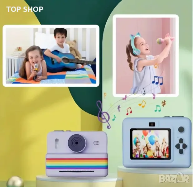 Дигитален фотоапарат детска камера за моментални снимки стил Paloroid с Игри + Карта Памет 32GB