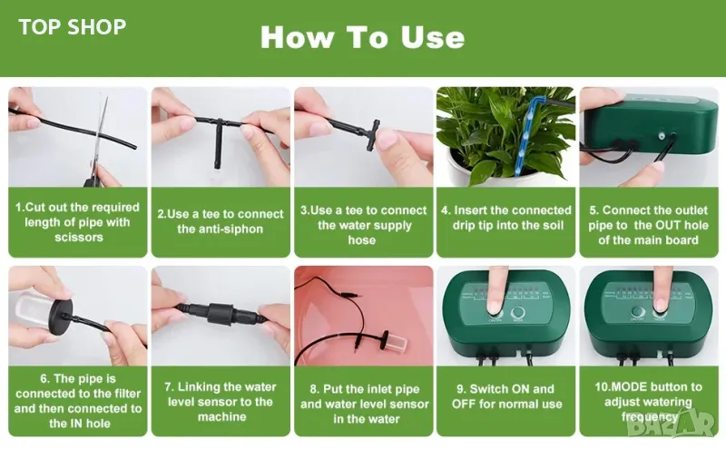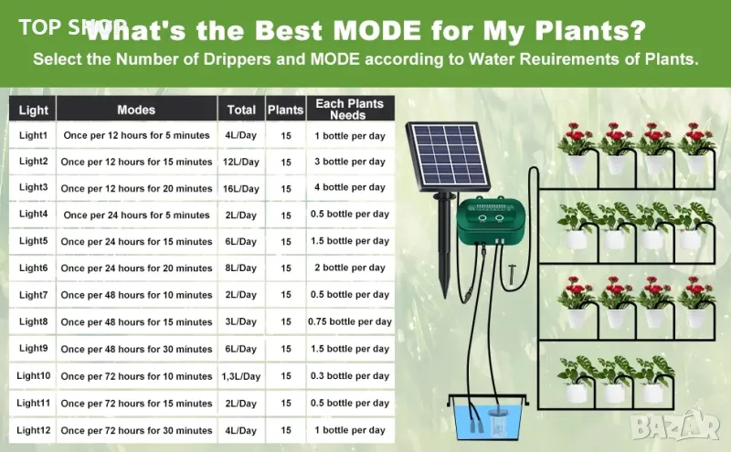 Соларна система за капково напояване автоматично поливане 12 режима таймер