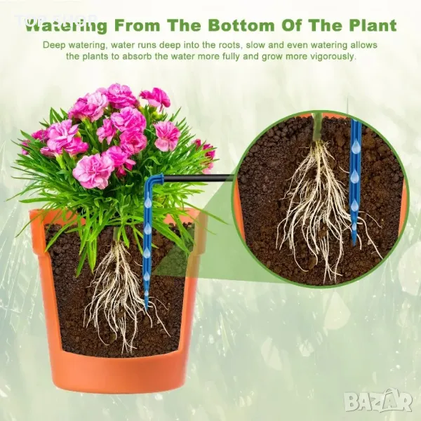 ПЪЛЕН КОМПЛЕКТ И РАЗНООБРАЗЕН Комплектът за система за капково напояване включва слънчеви панели, интегрирано управление на помпата, 50 футов маркуч, 15 заземителни щепсела, антисифон, заземителни колове, филтри, инструкции и съединители. Подходящ за напояване на тревни площи, вътрешни дворове, градини, поливане на зеленчуци, висящи кошници, саксийни растения, цветни лехи, оранжерии и др. Бавното и равномерно поливане позволява на растенията да абсорбират водата по-пълно и да растат енергично