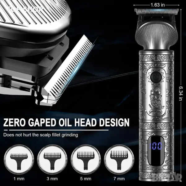 тример с T-образно острие от манганова стомана, подходящ за подстригване, подстригване, оформяне на косата и плешива глава, остава остър за удобно подстригване, няма да скубе косата или да нарани скалпа ви, много лесен за оформяне вашата коса. Т-образното острие е идеално за прецизно подстригване, бради и бакенбарди и отлично за подплата и произведения на изкуството