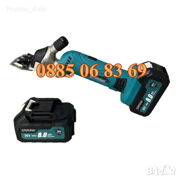 Акумулаторна машина за подстригване на овце STAHLMAYER има 2 батерии с напрежение 36 V, капацитет 8 Ah и зарядно устройство.