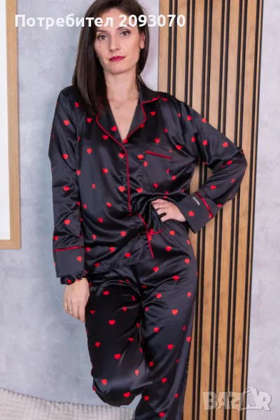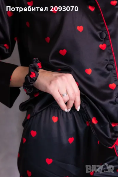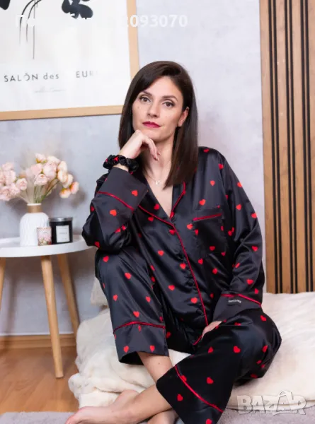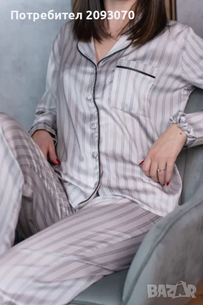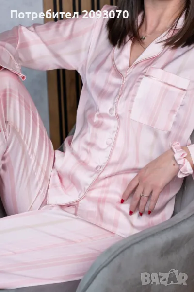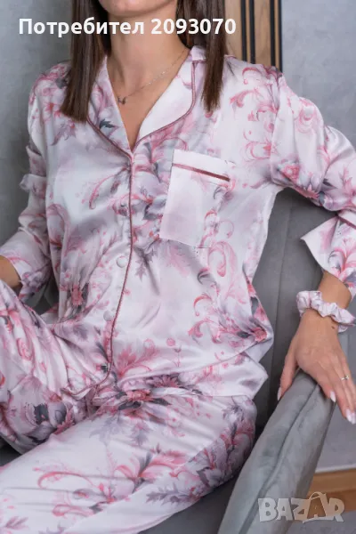 Изключително елегантена, сатенена пижама.С подарък-скрънч за коса.