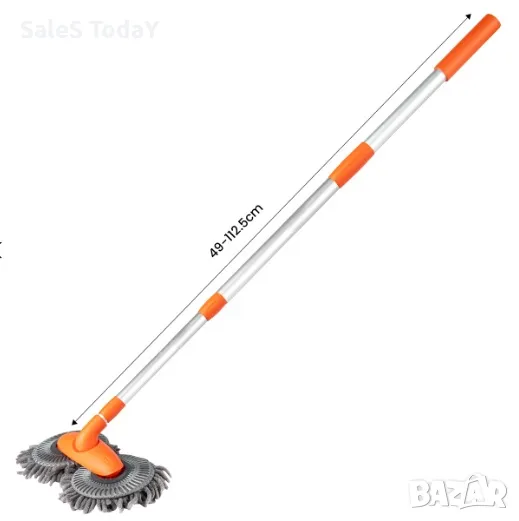 Телескопична дръжка (49 - 112,5 см): Регулируемата дължина ви позволява удобно да почиствате както покрива, така и долните части на автомобила - без да се налага да се катерите или навеждате.