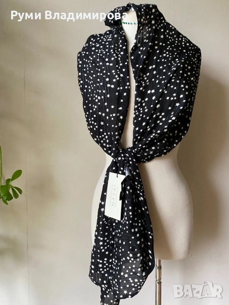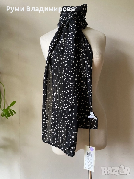 Черен шал на бели звездички Masai, с етикет от 98 % вискоза, снимка 1 - Шалове - 48941296 Черен шал на бели звездички Masai, с етикет от 98 % вискоза, снимка 2 - Шалове - 48941296 Черен шал на бели звездички Masai, с етикет от 98 % вискоза, снимка 3 - Шалове - 48941296 Черен шал на бели звездички Masai, с етикет от 98 % вискоза, снимка 4 - Шалове - 48941296 1/4
