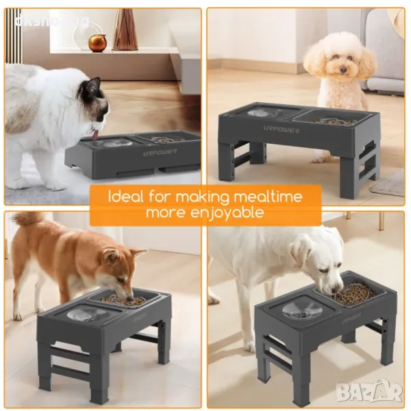 Регулируема височина за удобство при хранене на кучета от различни размери.