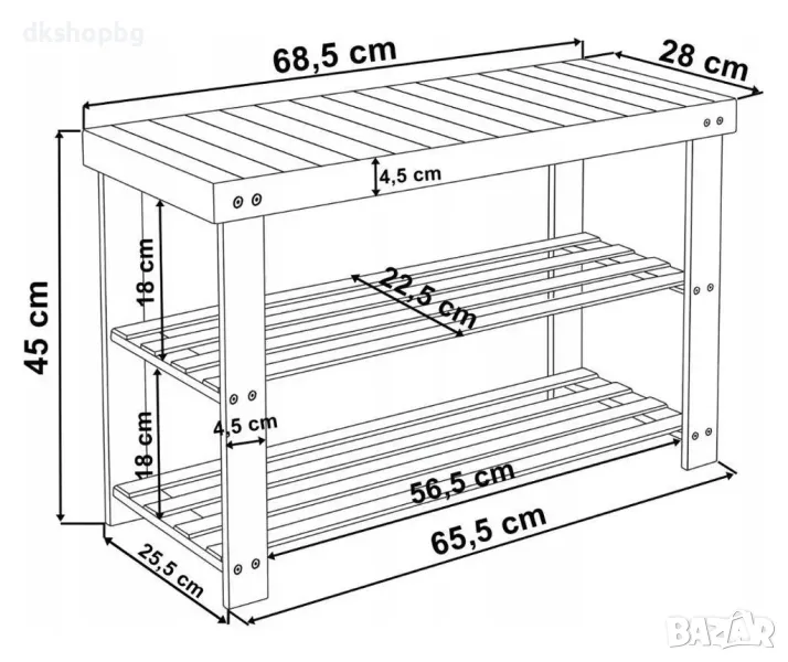 Добавете ред и стил във вашия дом с тази функционална и красива бамбукова пейка с рафтове!
