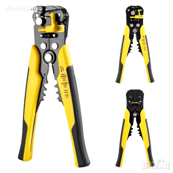 Автоматично сваляне на изолация: Подходящи за различни кабелни размери (AWG 10-24), клещите осигуряват бързо и точно отстраняване на изолацията без увреждане на проводника.