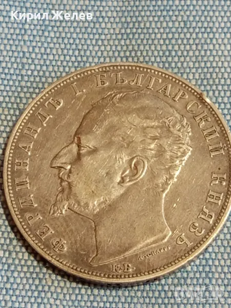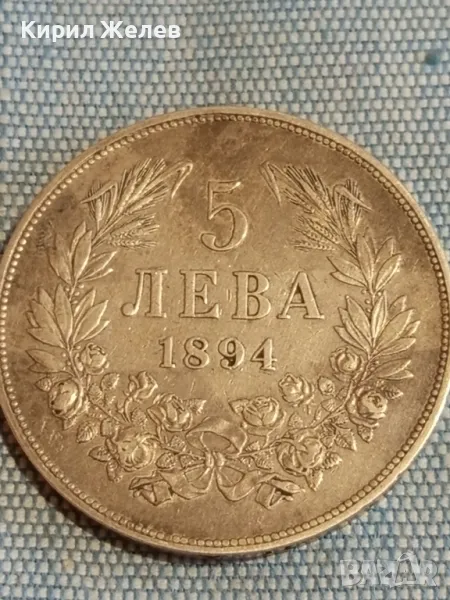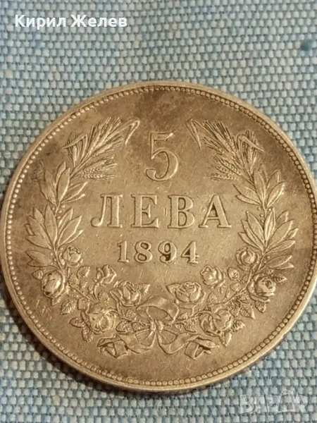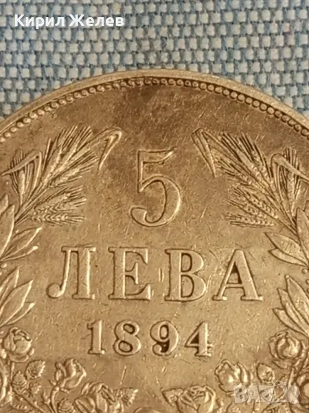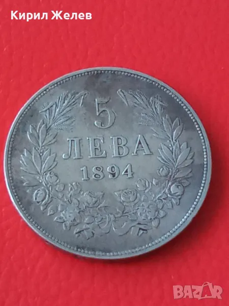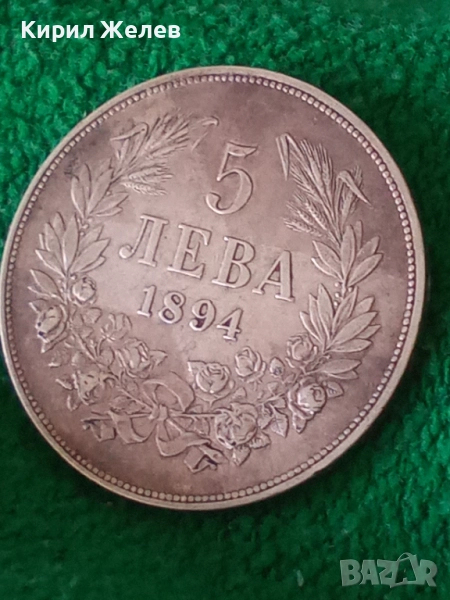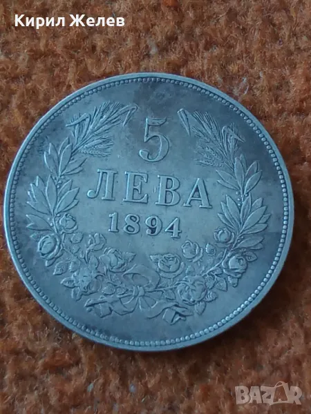 ДържаваБългарияПериодКняжество България 1878 - 1907ВалутаБългарски левТип монетаМонети в обращениеНоминал5 леваЦена на метала25 XAGg x 0,900 = 42 BGNГодина1894УправникФердинанд IМеталСребро 0.900Тип на ръбаНадписанОписание на ръбовете'Боже пази България'ФормаКръгОриентацияМонета (180°)Тегло (g)25Диаметър (mm)37Дебелина (mm)2,9