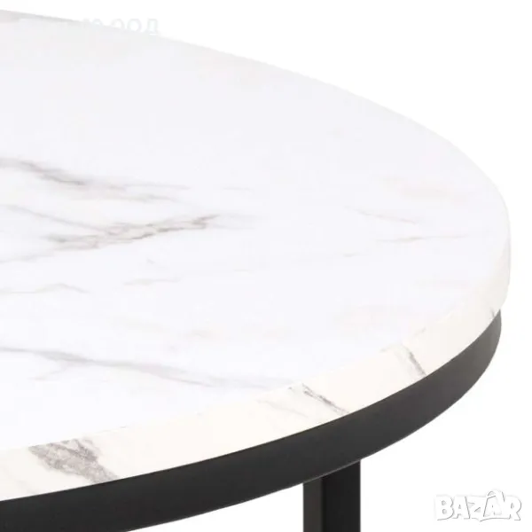 Холна маса с кръгъл плот с размери Ш:80/Д:80/В:40 см. Със своята форма и плот от ПДЧ с имитация на бял или черен мрамор, ще добави желан лукс и стил към помещението. Рамката на масата е с протектори щадящи пода, произведена от два метални обръча и четири опори, прахово боядисани. Плотът е произведен от висококачествено ПДЧ в кръгла форма. Със своята вродена класа без усилие създава приятна атмосфера на спокойствие и уют. Кръглата маса е изключително лесна за вписване към повечето интериори, по-безопасна (без ъгли), като изпълнява пълноценно своята функция. Поставена до комфортната мека мебел, освежителните напитки ще са само на една ръка разстояние. Масата може да бъде с плот в бяло или черено, според вашите предпочитания.