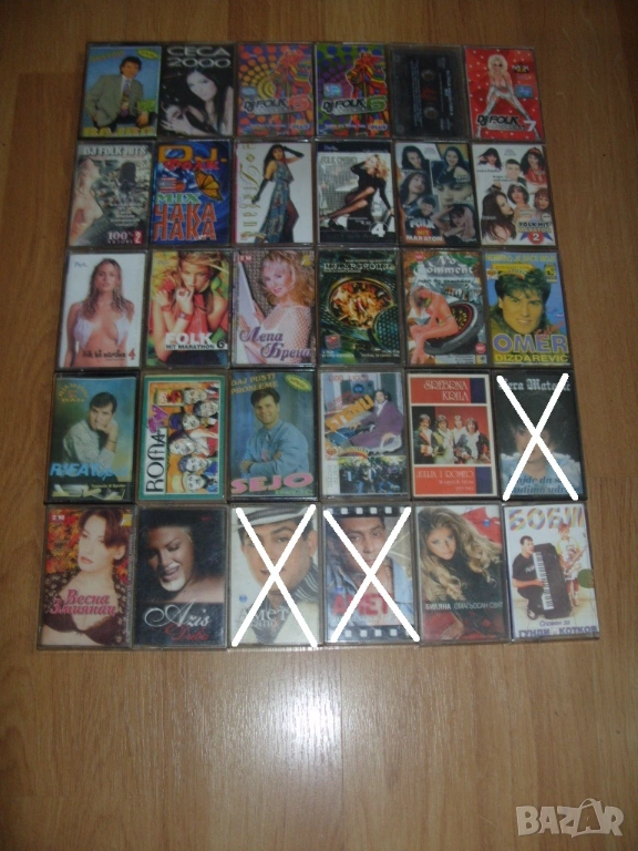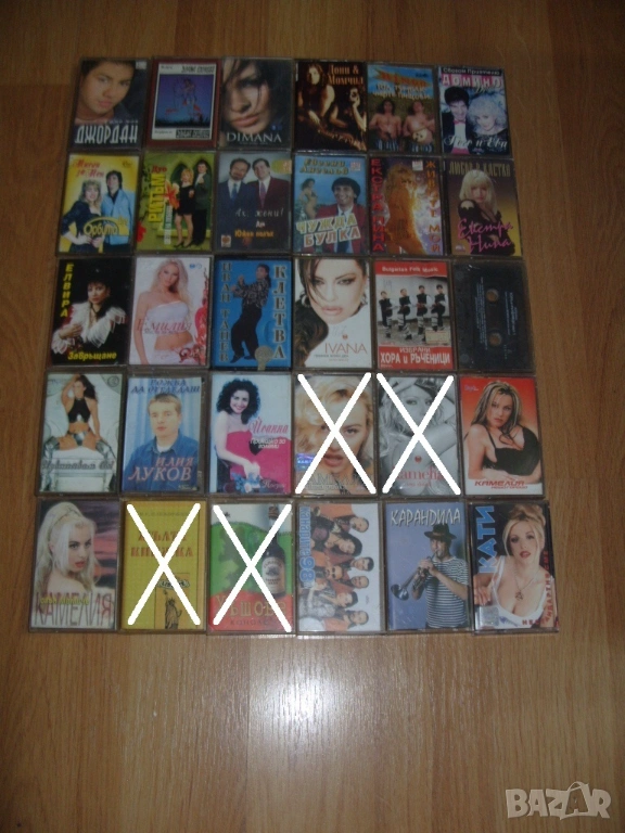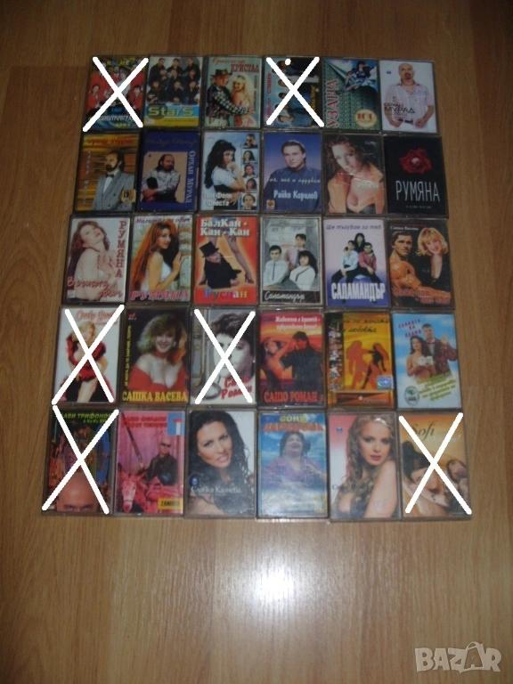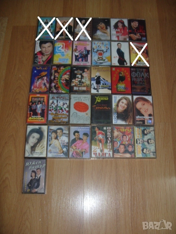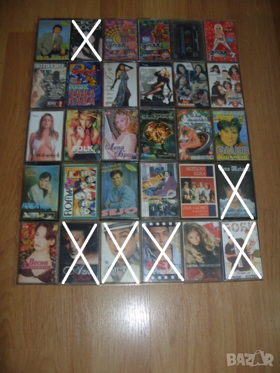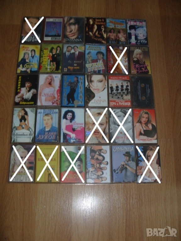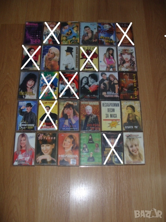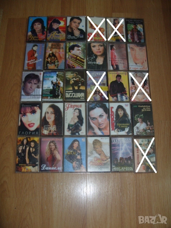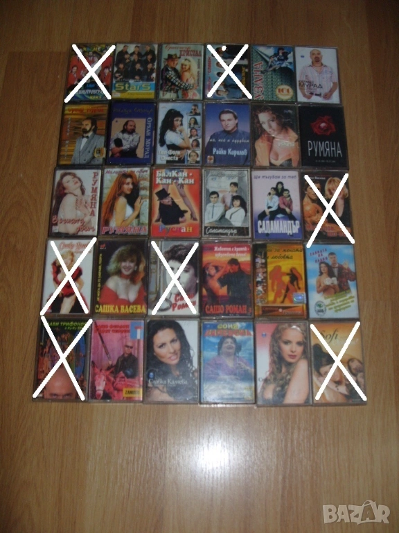 Всички аудио касети които са продадени са задраскани на снимките и не са изписани в списъка.