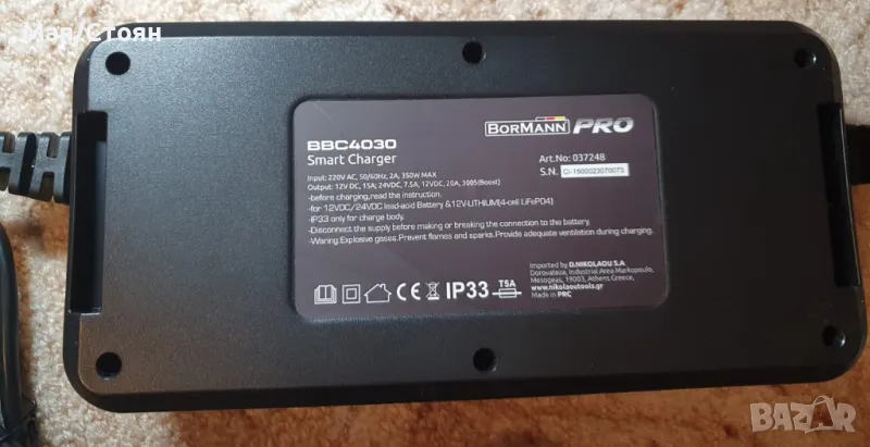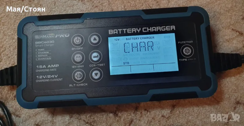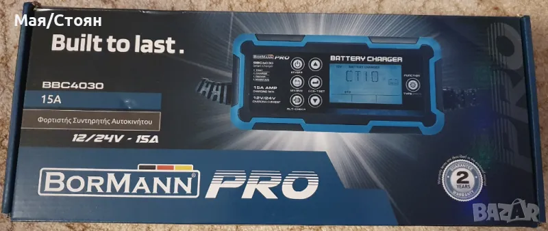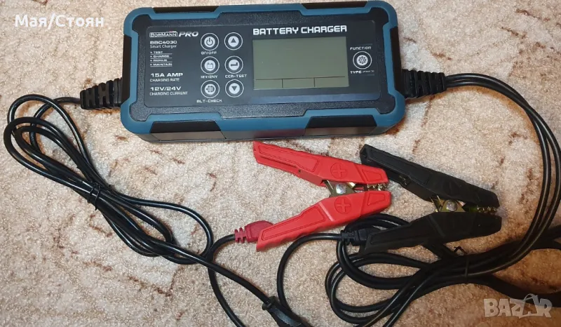 Автоматично зарядно устройство BORMANN Pro BBC4030, подходящо е за зареждане на всички видове оловно-киселинни батерии 12 V и 24 V (WET/MF/EFB/GEL/AGM...) както и 4 клетъчни литиеви батерии (LiFePO4) . Притежава LCD дисплей и напълно автоматичен 8-стъпков цикъл на зареждане. Вграденият микропроцесор прави зареждането по-бързо и прецизно. Има функция за безопасност, включително искроустойчивост, защита за обратна полярност, късо съединение, прегряване и презареждане.
