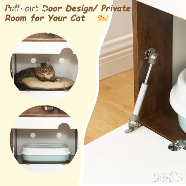 Котките могат да влизат и излизат лесно, да спят необезпокоявана в долната част, да играят и да имат достъп до храна и вода.