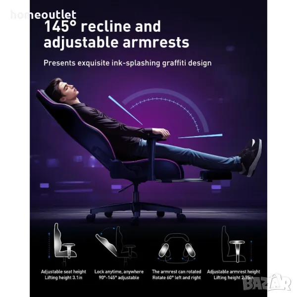 Седалката на игралния стол е с дебелина 4,3 инча (11 см) и има правилната твърдост. Голямата повърхност на седалката осигурява повече пространство за краката ви и е подходяща за едри хора.