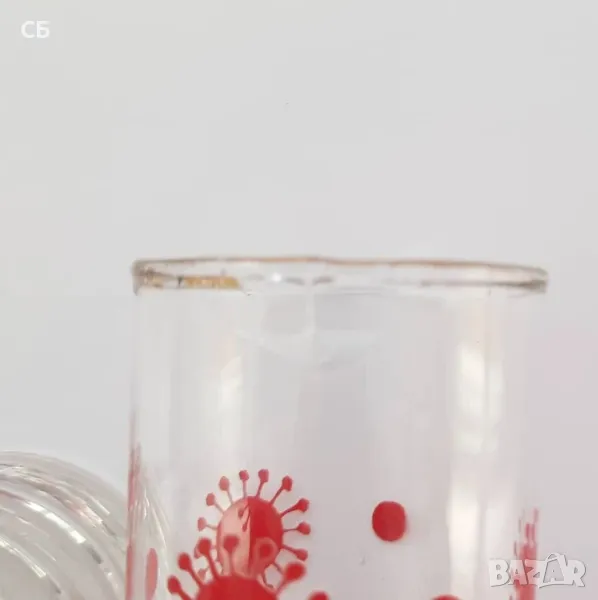 4. 6 руски шотчета с червена декорация - едната има леко чукване на ръба - вм. 40 мл, в. 8,5 - см - 5 евро общо