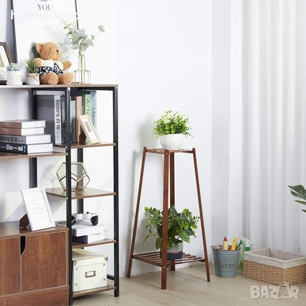 Този бамбуков стелаж може да се използва не само като стойка за растения, но и като рафт за съхранение, стойка за излагане на различни предмети, дори и като органайзер за баня.