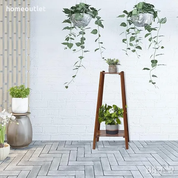 Стойката за растения, изработена от бамбук ( щадящ околната среда материал), може да се използва както на закрито, така и на открито.