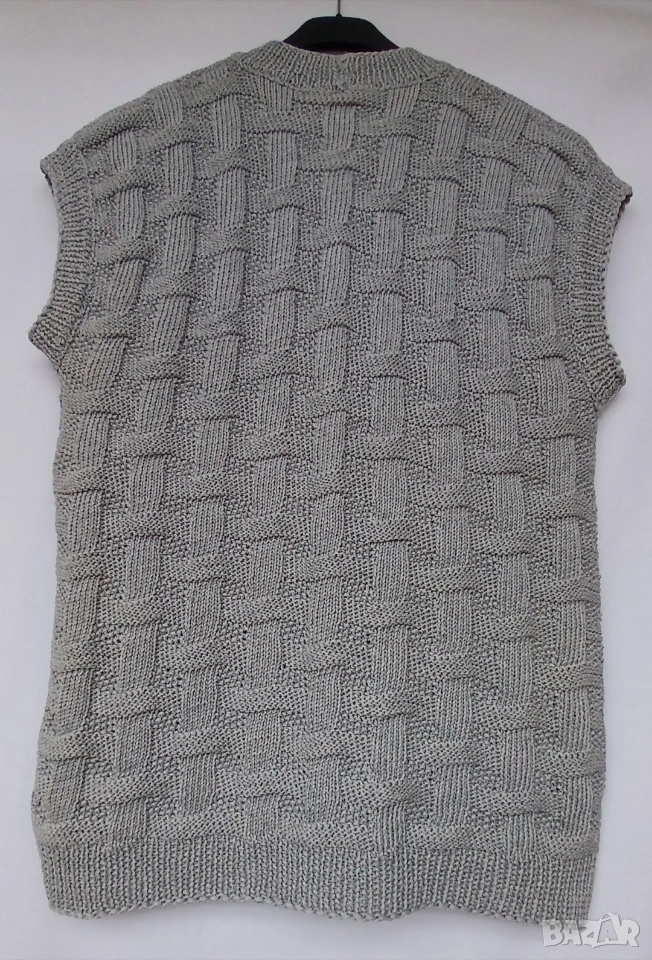 Сив мъжки елек с остро деколте и с обиколка на гърдите 100 см и дължина 68 см.