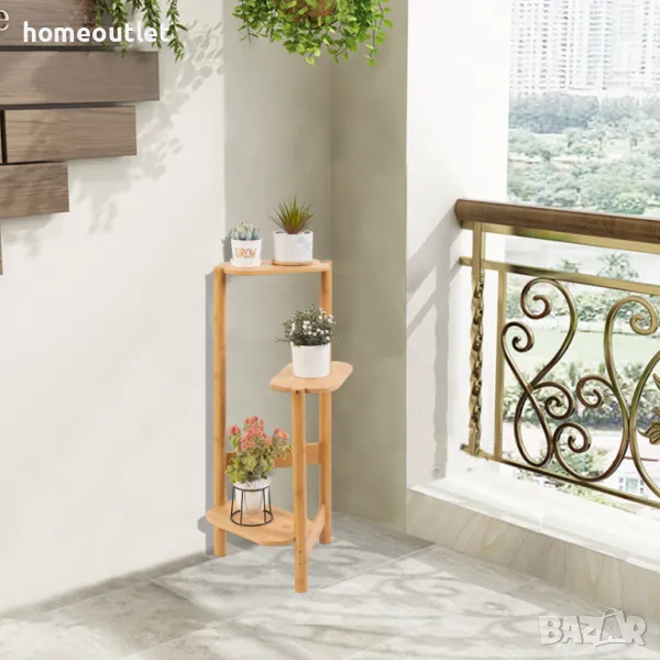 Стойката за растения, изработена от бамбук ( щадящ околната среда материал), може да се използва както на закрито, така и на открито.