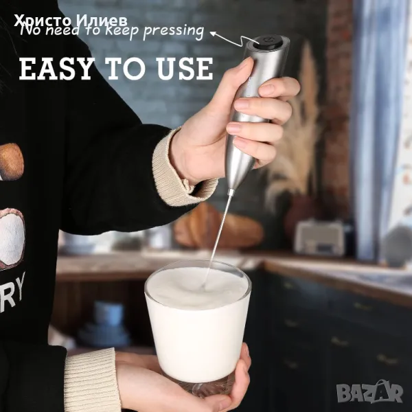 Лесен за използване: Едно просто натискане за кремообразна пяна; Просто натиснете бутона за захранване веднъж, за да започнете да разпенвате, без да е необходимо да държите бутона натиснат; Отпуснете ръката си, насладете се на процеса на разпенване и разбийте млякото до желаната от вас консистенция