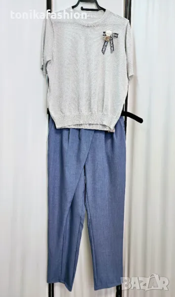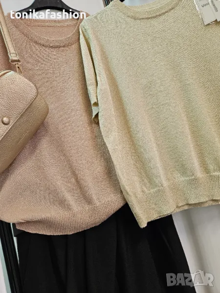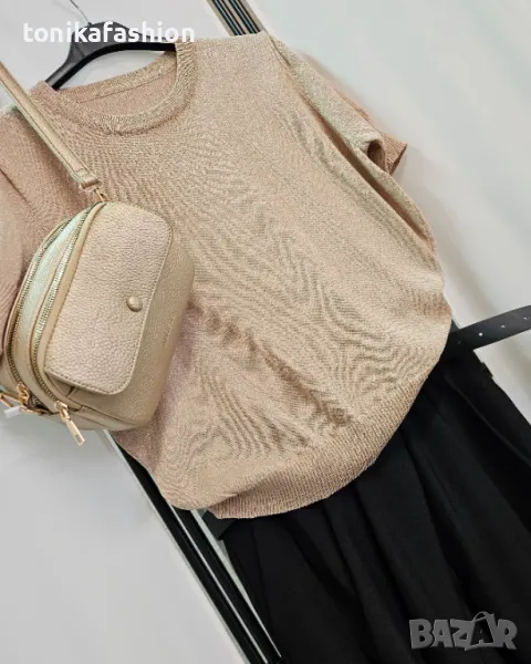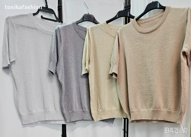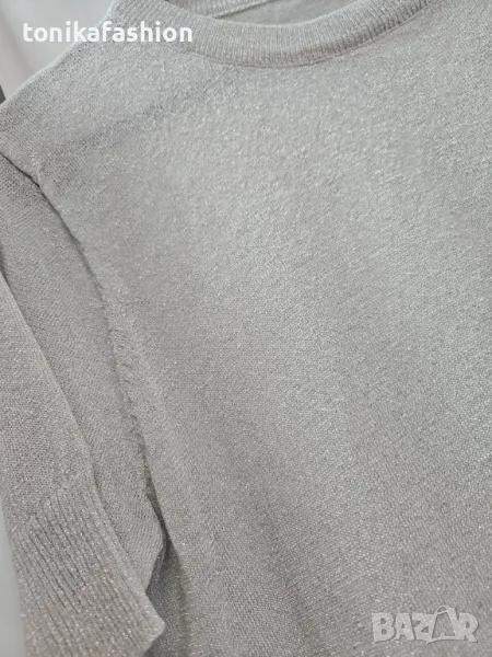 Блуза от тънко плетиво с къс ръкав и ламе. Плетивото не боцка.