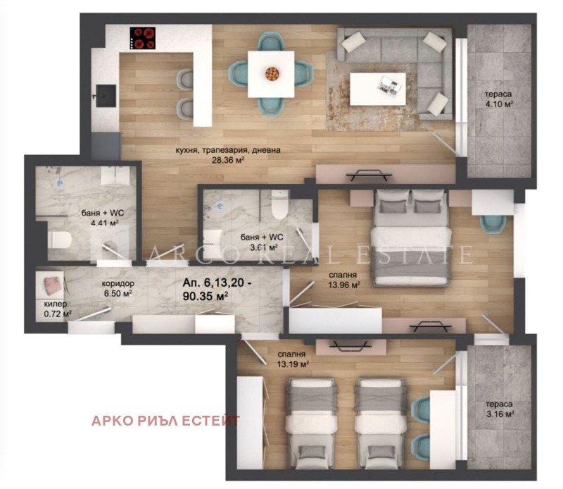 Голям вътрешен двор: Собствени зелени площи с места за отдих, детски и спортни площадки.