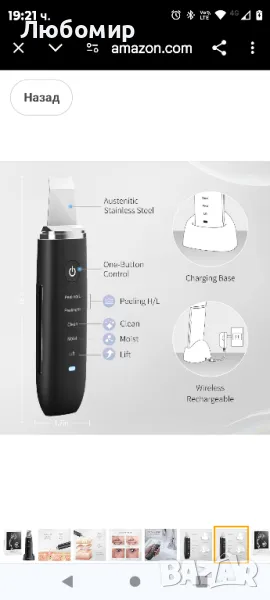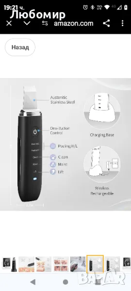 COSBEAUTY Шпатула за лице Скрубер за кожа Средство за премахване на черни точки Почистване на порите Екстракт за комедони с 4 режима IPX6 Водоустойчив безжичен презареждаем.Устройство за дълбоко почистване: Усъвършенстваното устройство за грижа за кожата на COSBEAUTY може да почисти дълбоко порите, мъртвата кожа и други замърсявания във вашата кожа до 3-5 mm дълбочина. Не уврежда кожата ви, но прави по-ефективно премахването на мръсотията от кожата ви. Масажната глава може да позволи на кожата ви да постигне усвояване на хранителните вещества и да стегне фините ви, да повдигне перфектните ви линии на лицето. Осигурява ви професионална и ефикасна грижа за кожата след дълбоко почистване.Този препарат за премахване на черни точки може да проникне дълбоко в кожната тъкан, да премахне ефективно черните точки, да ексфолира и да почисти дълбоко. Влажен Генерирайте голямо количество йонен проникващ поток, за да помогнете на хранителните вещества в продуктите за грижа за кожата да проникнат дълбоко в кожата. Повдигане Стимулирайте мускулите чрез масаж, за да възстановите мускулната еластичност.Шпатулата има ергономичен дизайн, който пасва на кожата на лицето. Вдлъбнатата повърхност на шпатулата пасва на контура на лицето, а гладките заоблени ъгли пасват напълно на позицията на носа. Ъгълът от 165 е по-в съответствие с навика на ръкохватка и работата е по-лесна.