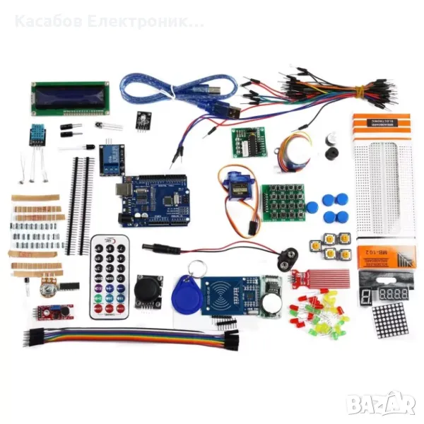 Начален комплект за обучение в програмирането на микроконтролери, съвместим със средата Arduino, идеален за начинаещ. Съдържа огромен брой сензори, дисплеи, сервомотори, светодиоди и други елементи, които да помогнат практическото обучение по програмиране. Всички компоненти са затворени в удобен органайзер, който позволява удобно транспортиране и лесно намиране на всяка част.