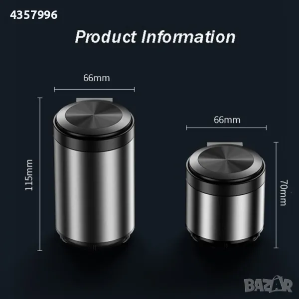 LUX Автомобилен Пепелник, Бездимен, Два размера, Led