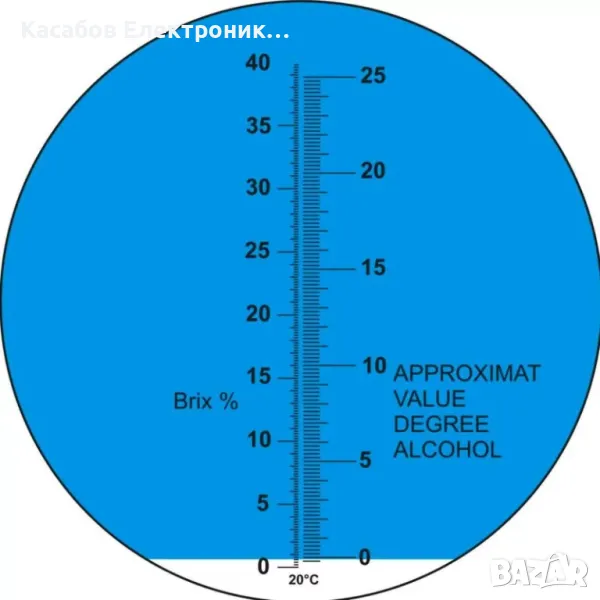 - Скалата Brix% от 0% до 40% - ви позволява да определите съотношението на захар към вода в разтвора - ако получим резултат от 22%, това означава, че в 100гр разтвор има 22гр захар и 78гр вода.