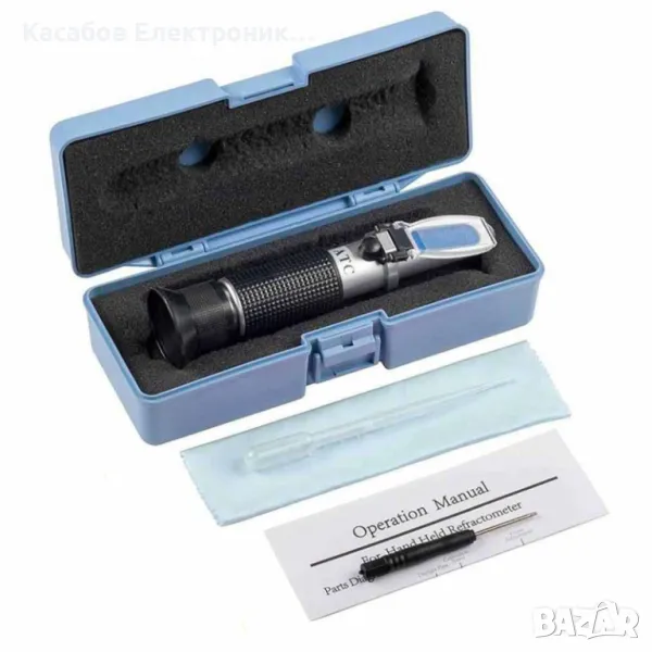 Рефрактометър, предназначен за измерване на концентрацията на захар във вино, бира или ликьор и алкохолното съдържание след ферментация. Уредът е много лесен за използване, готов за измерване още от опаковката. Благодарение на ATC - автоматична система за калибриране, той може да се използва при различни температури на околната среда и не изисква повторно калибриране. Рефрактометърът не изисква електронно захранване.