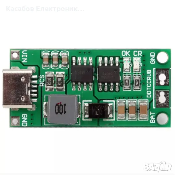 Зарядното устройство има интелигентно регулиране на напрежението, което компенсира вътрешното съпротивление на батерията и кабелите. Платката ви позволява да приложите входното напрежение за зареждане през USB-C порта или подложките за запояване разположени до порта.