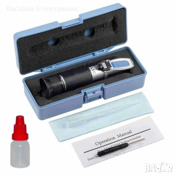 Комплектът включва специална течност за калибриране на рефрактометъра.