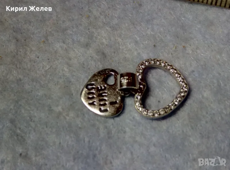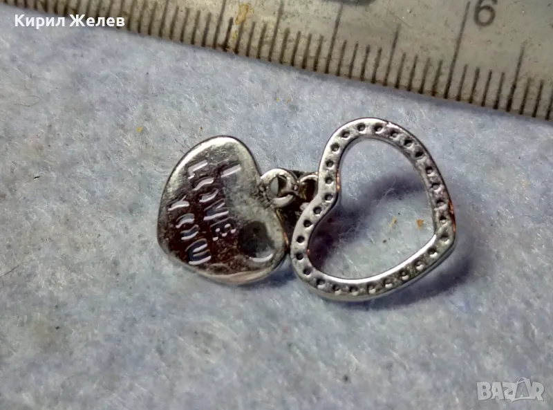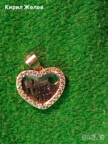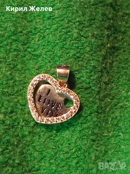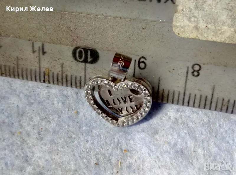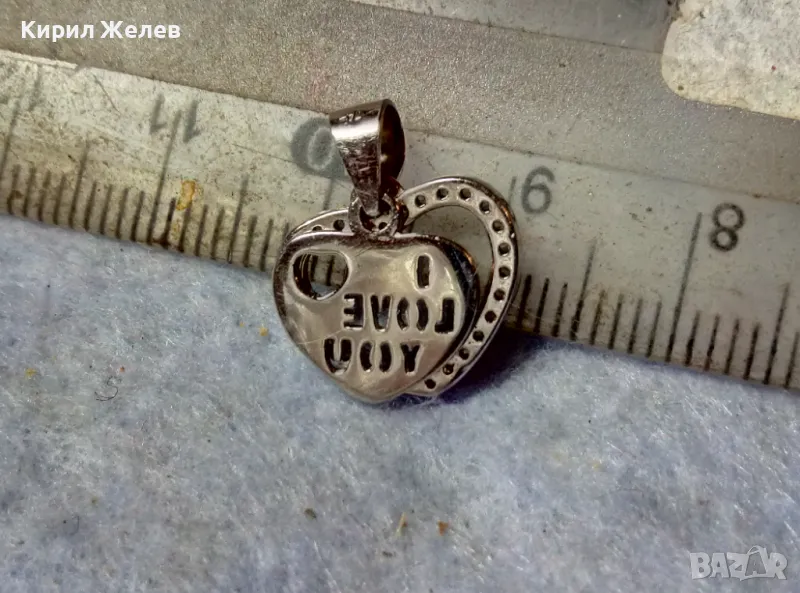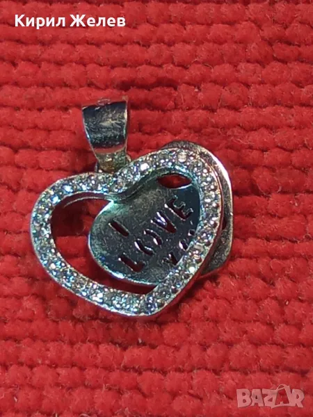 I LOVE YOU НЕЖЕН ЛЮБОВЕН СРЕБЪРЕН МЕДАЛЬОН СЪРЧИЦЕ РОДИРАНО СРЕБРО 925 с ИСКРЯЩИ ЦИРКОНИ 41302