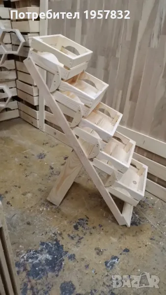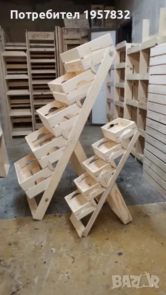 Представяме Ви функционален и стилен стъпаловиден стелаж, изработен от висококачествен дървен материал, идеален за организиране на плодове, зеленчуци и други продукти в магазини, заведения или дори у дома. С този стелаж ще създадете не само практично решение за съхранение, но и визуално привлекателен акцент във всяко пространство.