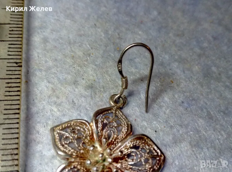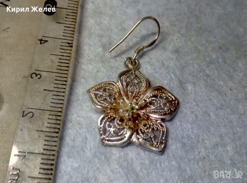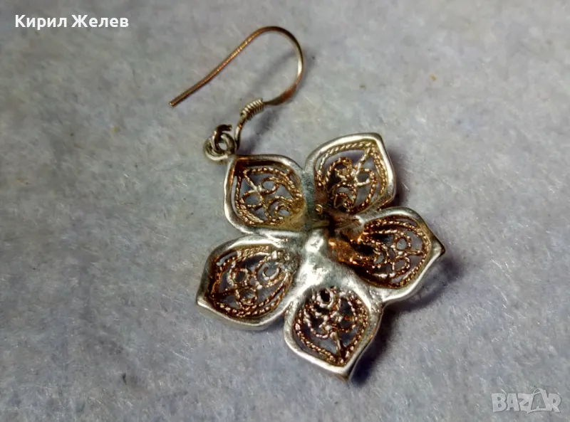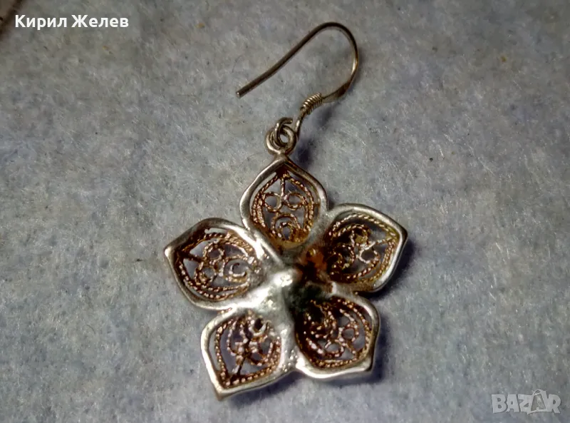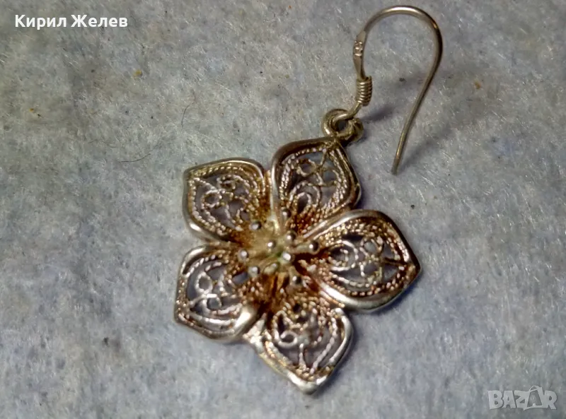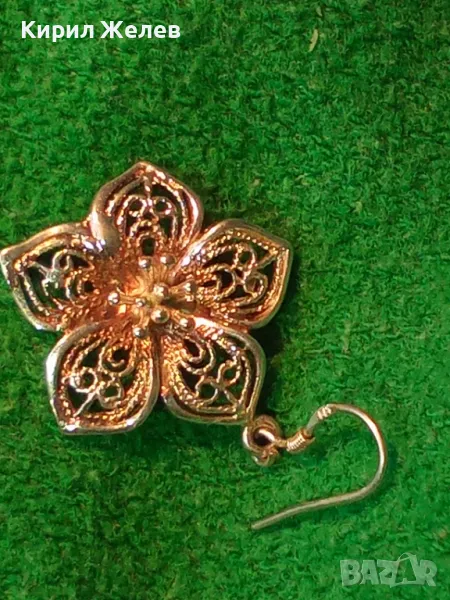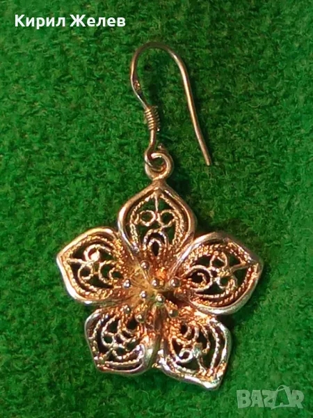 НЕЖНА ФЛОРАЛНА ФИЛИГРАННА ПОСРЕБРЕНА ОБЕЦА ЦВЕТЕ от БЛАГОРОДНА СТОМАНА 49319