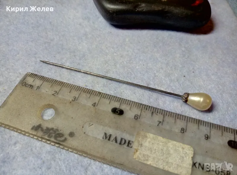 СТАРИННА ПОСРЕБРЕНА ПЕРЛЕНА ИГЛА РЕТРО УКРАШЕНИЕ За РЕВЕР ШАПКА 48567