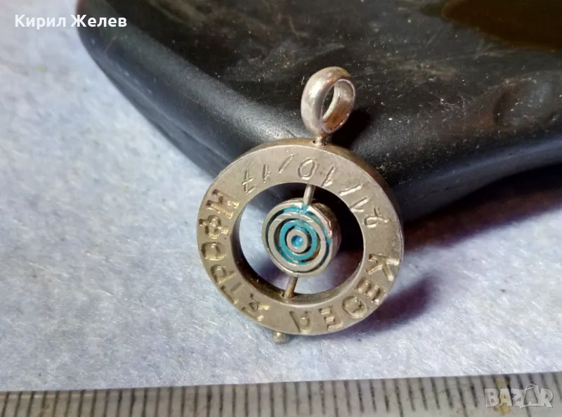 ИНТЕРЕСЕН ВЪРТЯЩ се ГРЪЦКИ СРЕБЪРЕН МЕДАЛЬОН СРЕБРО 925 с НАДПИС и РЪЧНО ГРАВИРАНА ДАТА 48578