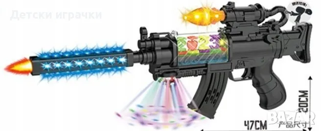 Детско електронно оръжие автомат със звук и цветно LED осветление. Той е снабден и с проектор. Реалистичен дизайн и впечатляващи дизайнерски детайли за безкраен екшън геймплей.